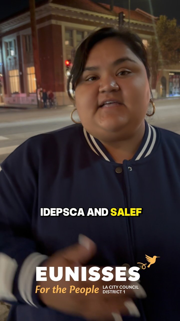 Eunisses Hernandez is running for re-election to continue fighting for a city where dignified housing is a human right, where no one has to choose between food or rent, where our kids are safe and healthy, where immigrants are welcome, and where our budget invests in care and community.